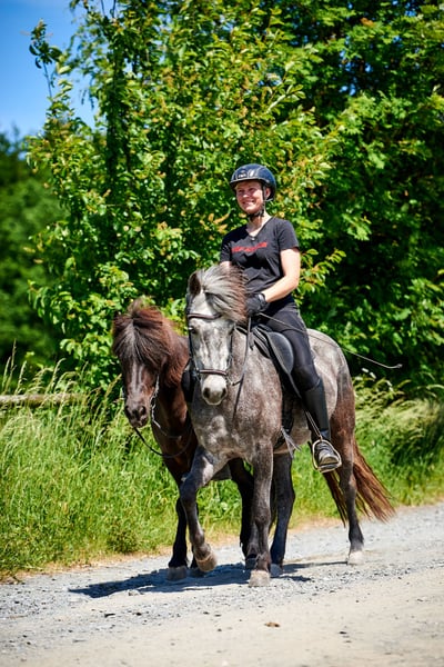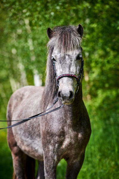 Hnokkadis frá Hofsósi ⭐️ 2018 Height: 14.0 hh Mare: Stelpa frá Haukagili Stallion: Hnokki frá Þúfum Uncomplicated 8-year-old five-gaited mare Are you looking to - compete in shows - attend riding courses - participate in trail rides - go on riding rallies Then I have the perfect horse for you. Hnokkadís has almost everything you need. She has a straightforward character, is easy to handle, and features a clear, smooth five-gaited gait. She has been trained mainly in four gaits so far, with initial work on the tölt just beginning. At five years old, she has already competed in 1-2 small competitions (with moderate results, but always very well-behaved and easy to handle, even in unfamiliar environments). Currently, she has about 5.5–6 individual scores, mostly in the stable 6-range, and I see potential for further improvement with continued training. Whether free jumping, groundwork, or riding with a longe line, Hnokkadís is open and curious about everything new. Hnokkadís has been in Germany for over five years and shows no signs of eczema. She is healthy, regularly vaccinated, dewormed, and has her teeth checked regularly. Due to her expressive gait, I wouldn’t classify her solely as a beginner or children's horse, but children can easily lead her. Overall, she is very calm and fearless, rarely losing her composure, yet she is not dull or sluggish. I can easily imagine her as a luxury leisure horse, well-suited for clinics, riding badges, or simply for relaxed rides alone or in groups. She is comfortable riding in any gait position, whether alone or in a group, and handles terrain without issues. She would also perform well in sport, especially in lower-level competitions, with both young riders and adults. She was bred and trained by me (Trainer C). She is familiar with dogs, tractors, road traffic, and is both farrier- and loading-friendly. Location: 65510 Idstein For more information or additional videos, please send a private message.
