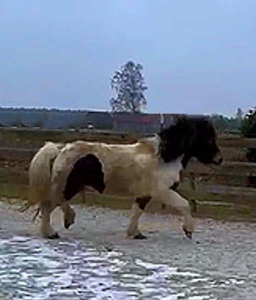Stutfohlen Skessa *27.03.2026 Rappfalb-Helmschecke (kann verdeckt Cremegen tragen) V: Vingþór vom Holtdorftal (Rappfalb-Helmschecke) VV: Seðill frá Vatnsleysu VVV: Glampi frá Vatnsleysu VM: Villimey vom Queckenberg M: Skinna vom Holtdorftal (Fuchs-Helmschecke) MV: Dýri von Áladís MM: Skólahreysti frá Borgarnesi MMV: Skjanni frá Nýjabæ Aufgewecktes Stutfohlen, das schon kurz nach der Geburt den Tölt gezeigt hat und seitdem kaum zu bremsen ist. Zeigt keinerlei Scheu und erobert wissbegierig die Welt. Auch farblich kann die Süsse sich sehen lassen: Rappfalb-Helmschecke in schicker "Jacke", welches die Urväter des Splashs in sich trägt. Und somit ganz sicherlich einmal eine tolle Nachwuchsstute für die Zucht und vielleicht auch ein toller später Reitpartner. Das werden die Zeit, ihre weitere Entwicklung und die Zukunft zeigen. Skessa darf, wie bei uns alle Fohlen, jetzt erstmal ihre Zeit auf der Weide mit der Mama verbringen und die Welt erkunden und kann nach dem Absetzen im Herbst in ihr neues Zuhause umziehen. Bis dahin wird sie das Fohlen-ABC beherrschen, wird natürlich regelmässig entwurmt und erhält volle Papiere. Bis zur endgültigen Registrierung im Spätsommer hat der zukünftige Besitzer noch die Möglichkeit, selbst einen Namen für diese kleine Schönheit auszusuchen. Weitere Informationen, Fotos und Video auf Anfrage