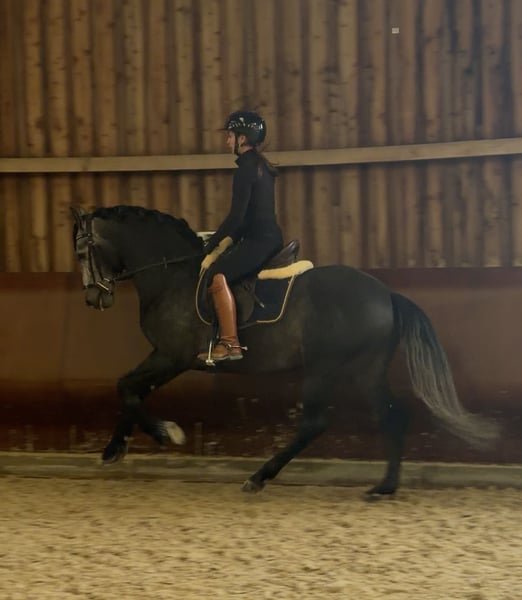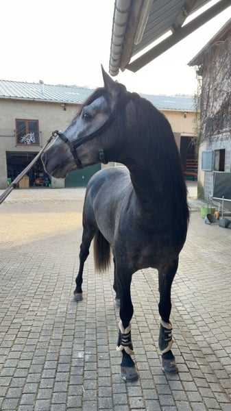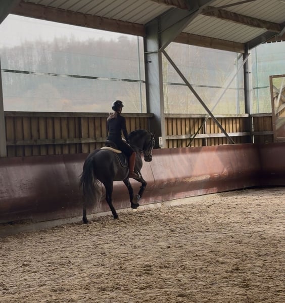 Schöner 4-jähriger P.R.E. Hengst, seit einigen Wochen schonend unter dem Sattel. Er zeigt sich sehr kopfklar, freundlich und mit einer angenehmen Einstellung zur Arbeit. Für sein junges Alter ist er ausgeglichen und macht täglich positive Fortschritte. Der Hengst verfügt über drei gute bis sehr gute Grundgangarten mit viel Qualität. Der Schritt benötigt aktuell noch etwas Zeit zum vollständigen Loslassen, was alters- und ausbildungsbedingt ist. Trab und Galopp zeigen sich aktiv, gut ausbalanciert und mit schöner Mechanik. Er ist unkompliziert im Umgang, brav im täglichen Handling und vermittelt dem Reiter ein sicheres Gefühl. Gute Röntgenbilder sind vorhanden. Der Hengst steht derzeit in Luxemburg und kann nach Absprache gerne vorgestellt werden.
