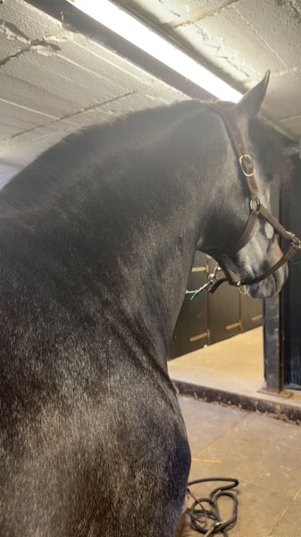 Beautiful 3-year-old P.R.E. stallion, recently started under saddle with gentle training. He is very intelligent, friendly, and has a positive attitude towards work. For his young age, he is well-balanced and makes steady progress every day. The stallion has three good to very good basic gaits, characterized by much quality. His walk currently requires a bit more time to fully develop, which is age- and training-related. Trot and canter are active, well-balanced, and showcase a lovely mechanics. He is easy to handle, well-behaved in daily interactions, and instills confidence in the rider. The video shown in the listing was recorded during his first session in this arena, highlighting his calmness and strong nerves. Good X-ray results are available. The stallion is currently located in Luxembourg and can be presented for inspection by arrangement.