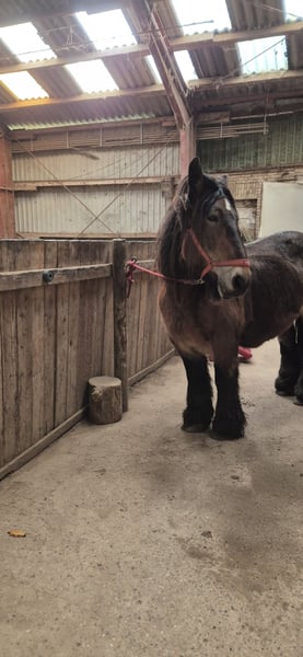 Liebe 15 jährige Jütländerstute .Lotte ist brav im Umgang und sehr anhänglich .Stm ca 155 cm