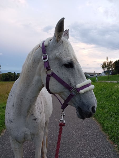 Meine 15-jährige Stute Flöckchen sucht ein liebevolles neues Zuhause. Sie ist eine sehr liebe und umgängliche Pferdedame, die den Kontakt zu Menschen genießt und sich über Zuwendung freut. Leider ist Flöckchen nicht mehr reitbar, da sie hinten rechts Probleme mit dem Fesselträger und vorne leichte Arthrose hat. Daher wünsche ich mir für sie einen Platz als Beistellpferd, an dem sie ihren Lebensabend in Ruhe und mit guter Pflege verbringen darf. Da ich selbst zwei kleine Kinder habe, fehlt mir leider die Zeit, mich ihr so zu widmen, wie sie es verdient. Flöckchen ist lieb im Umgang, herdenverträglich und freut sich über Menschen, die ihr mit Herz begegnen.