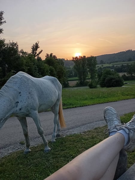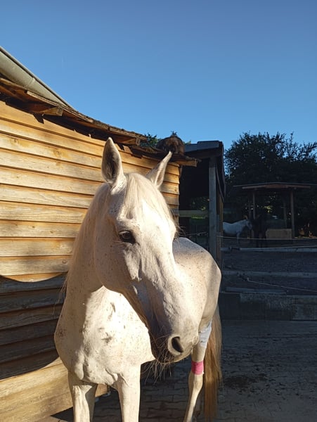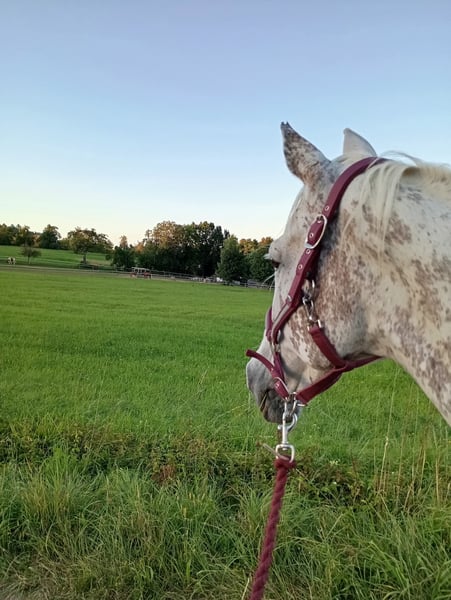 Meine 15-jährige Stute Flöckchen sucht ein liebevolles neues Zuhause. Sie ist eine sehr liebe und umgängliche Pferdedame, die den Kontakt zu Menschen genießt und sich über Zuwendung freut. Leider ist Flöckchen nicht mehr reitbar, da sie hinten rechts Probleme mit dem Fesselträger und vorne leichte Arthrose hat. Daher wünsche ich mir für sie einen Platz als Beistellpferd, an dem sie ihren Lebensabend in Ruhe und mit guter Pflege verbringen darf. Da ich selbst zwei kleine Kinder habe, fehlt mir leider die Zeit, mich ihr so zu widmen, wie sie es verdient. Flöckchen ist lieb im Umgang, herdenverträglich und freut sich über Menschen, die ihr mit Herz begegnen. Sie hat regelmäßig ihre Hufe bearbeitet bekommen und wurde regelmäßig geimpft und entwurmt