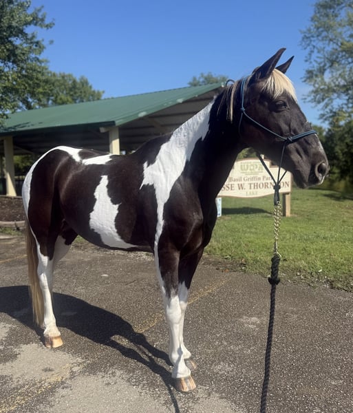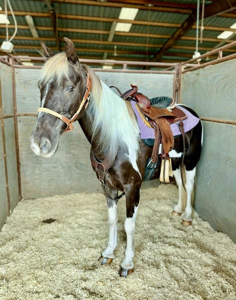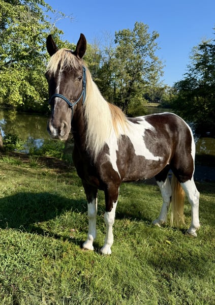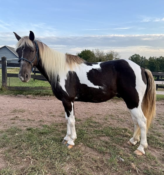 VERFÜGBAR beim Online-Pferde-Auktion unter www.DOT-MagicHorseAuction.DOT-com GEBOT AB JETZT BIS DIENSTAG, 28. OKTOBER! – SOFORTKAUF MÖGLICH! *Der Endpreis wird auf der Auktionsseite festgelegt* KONTAKT DES AUKTIONSGEBERS: Hannah Zorn, 917-821-4140 STANDORT: Lebanon, NJ „Cadbury ist ein sehr fröhliches Pferd, das auf der Suche nach seinem nächsten Abenteuerpartner ist. Er ist ein Schokoladen-Silber-Dapple-Pinto-Mountainhorse-Wallach, 14,2 hh groß und 12 Jahre alt. Er ist ein Allround-Trailpferd, das bereits ausgiebig beim Campen und Trailreiten im Einsatz war. Er ist gut im Umgang mit Hunden, Nutztieren, Fahrrädern, Autos, Rollstühlen, Kletterern und Motorrädern. Er geht problemlos über Gitter, Baumstämme, Brücken, Felsen sowie durch Buschwerk, Schlamm oder Wasser. Er lässt sich problemlos baden, anbinden, verladen, in den Anhänger stellen, crosstieen, lungieren, für das Satteln und Zäumen bereitstellen. Er kann vorne oder hinten geritten werden, geht auch allein aus und ist nicht herdgebunden, sondern kehrt ruhig zum Trailer zurück. Er zeigt keine Tritte, Buckeln, Steigen, Durchgehen oder Schlagen und hat nur wenig Angst. Er kommt gut mit Stuten und Wallachen zurecht, kann tagsüber in der Box oder 24/7 draußen stehen. Er ist ein vorwärts orientiertes Pferd und absolut sicher für einen Reiter mit mittlerem Niveau. Für ein selbstbewusstes Kind, das reiten kann, wäre er ebenfalls ideal. Er macht gelegentlich beim Nicht-Galoppieren Geräusche, was nur ein Soundeffekt ist. Er ist nicht beunruhigt und macht das unter dem Sattel nicht. Ich reite ihn in einem Hackamore, er kann aber auch mit Gebiss geritten werden. Ich besitze ihn seit 2,5 Jahren, und er hatte keine gesundheitlichen oder hufrehebedingten Probleme. Er ist aktuell entwurmt, zahn- und impfmäßig auf dem neuesten Stand, inklusive Tollwut. An seinem Hinterhuf befindet sich eine Narbe am Hufrand, die von meinem Tierarzt als kosmetisch eingestuft wird und keine Probleme verursacht. Er hat in der Vergangenheit professionelle Ausbildung genossen und ist ein echtes Trail-Highlight!“