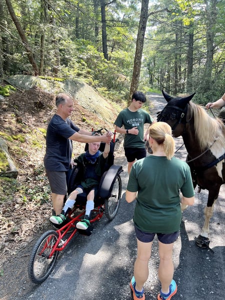 "AVAILABLE ON ONLINE HORSE AUCTION AT www DOT MagicHorseAuction DOT com BIDDING OPEN NOW thru TUESDAY | October 28TH! - BUY IT NOW AVAILABLE! *Final price will be determined on auction site* CONSIGNOR CONTACT INFO: Hannah Zorn 917-821-4140 LOCATION: Lebanon, NJ "Cadbury is a very fun horse looking for his next adventure partner. He is a chocolate silver dapple pinto spotted mountain horse gelding who is 14.2hh and 12 years old. He’s a go anywhere trail horse who’s been camping and trail ridden extensively. Good with dogs, livestock, bikes, cars, wheelchairs, rock climbers, and motorcycles. Goes over grates, logs, bridges, boulders and through brush, mud, or water without hassle. Bathes, ties, loads, trailers, crossties, lunges, stands for saddling, and bridles easily. Rides in front or in back, will go out alone and not herd bound and doesn't rush back to the trailer. No kick, buck, rear, bolt or strike, and very little spook. Gets along with mares and geldings, can be stalled or out 24/7. He's a forward horse and is completely safe for an intermediate rider or would be an excellent horse for a confident kid who can ride. He blows occasionally when not under saddle but it’s just a sound effect. He’s not worried and he doesn’t do it under saddle. I ride him in a hackamore but can be ridden in a bit too. I've owned him 2 1/2 years, and he's had no soundness or health issues. He's UTD on teeth, worming, and rabies vaccination. Has a scar on his rear cornet but been seen by my vet and it's cosmetic only and causes no issues. He's had professional training in the past and is a fun trail machine!