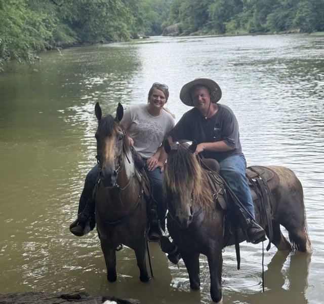 "VERFÜGBAR BEI DER ONLINE-PFERDEAUKTION UNTER www DOT MagicHorseAuction DOT com BIETEN IST JETZT OFFEN bis DIENSTAG | 2. SEPTEMBER! - SOFORTKAUF VERFÜGBAR! *Der endgültige Preis wird auf der Auktionsseite festgelegt* KONTAKTINFORMATIONEN DES VERKÄUFERS: Dillion Asher 606-308-2414 STANDORT: Mount Vernon, KY „Hey Mufasa!!!! Mufasa ist ein wunderschöner 6-jähriger 14,2 hh Champagne KMSH Wallach. Er ist atemberaubend anzusehen! Mit seinem Fabio-Haar und seinen einzigartigen Abzeichen und Farben wird er garantiert alle Blicke auf sich ziehen! Aber das ist nicht das, was Mufasa so besonders macht! Er ist ein lebendiger, atmender Einhorn oder er war es auf jeden Fall für uns. Jeder hat ihn absolut geliebt. Wir haben ihn diesen Frühling und Sommer überall geritten. Er wurde von jedem in der Familie geritten und als Gastpferd bei verschiedenen Gelegenheiten genutzt. Wir haben andere Pferde von ihm geführt, ihn zu einigen lokalen Shows mitgenommen und ja, wir haben mit ihm die Reifen unseres kleinen Wagens abgeritten. Wenn du das nicht mitbekommen hast, er reitet und fährt!! Er fährt nicht nur halbherzig, dieser kleine Kerl ist großartig! Mufasa ist sehr freundlich. Sehr einfach einzufangen. Er hat eine „trifft dich am Tor“-Persönlichkeit. Er lässt sich besser handhaben und hören als die meisten gut trainierten Hunde. Er liebt es, gestriegelt und verwöhnt zu werden. Er liebt ein Bad und ist sehr einfach zu scheren. Mufasa steht überall angebunden und du wirst ihn vergessen, wenn das Sinn macht, denn er ist so ruhig, dass du ihn nie hören wirst. Er ist auch an die Hobbles gewöhnt. Bewegt sich nicht, um gesattelt, gezäumt oder angezogen zu werden. Er steht ganz still, um an den Wagen angehängt zu werden, und du kannst ihn alleine an- und abhängen. Mufasa steht still, um aufzusitzen, und wird immer langsam und gemütlich losreiten. Er ist ein sehr entspannter Kerl. Er hat es nicht eilig. Er ist vollkommen zufrieden, einfach den ganzen Tag spazieren zu gehen. Aber er wird auch flott unterwegs sein, wenn man ihn darum bittet. Er hat einen sehr geschmeidigen, bodenbedeckenden Schritt, mit dem er wirklich viel Boden zurücklegen kann. Er hat auch einen sehr sanften Galopp, in den er direkt aus dem Schritt übergeht. Mufasa kann in einer Gruppe überall reiten. Setze ihn ganz hinten oder ganz vorne ein, er wird den Weg anführen oder entspannt hinten mitlaufen. Er ist wirklich einfach. Keine Probleme mit Stall- oder Kumpelunruhe. Sehr selbstbewusst und nicht schreckhaft. Du kannst dich sicher fühlen, ihn überall hin mitzunehmen und wissen, dass du in jeder Situation in guten Händen bist. Mufasa ist ein herausragendes Trail-Pferd, er wird über, unter, durch oder um alles gehen, was dir begegnen wird. Er ist das Pferd, auf dem ich sein möchte, wenn du eine falsche Abzweigung nimmst und vom gewohnten Weg abkommst. Er ist extrem trittsicher und achtet wirklich darauf, wo er seine Füße platziert. Es wird nicht zu rau für ihn. Er könnte mehr Bergziege als Pferd sein. Er ist 100000% verkehrssicher und perfekt im Umgang mit landwirtschaftlichen Maschinen, ATVs, anderem Viehzeug und Wildtieren. Wenn du nach deinem nächsten Trail-Partner suchst, der alles hat – Aussehen, Gang, Persönlichkeit, Fähigkeit und vor allem Verstand – solltest du Mufasa auf keinen Fall verpassen. Wir befinden uns in Mount Vernon, KY, und können bei Bedarf beim Versand helfen. Bitte zögere nicht, 6063082414 anzurufen oder eine SMS zu senden, wenn du Fragen hast oder einen Termin für eine Testfahrt und -fahrt vereinbaren möchtest. Danke fürs Anschauen!“