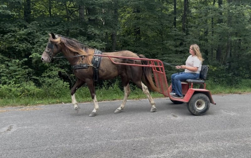 "AVAILABLE ON ONLINE HORSE AUCTION AT www DOT MagicHorseAuction DOT com BIDDING OPEN NOW thru TUESDAY | SEPTEMBER 2ND! - BUY IT NOW AVAILABLE! *Final price will be determined on auction site* CONSIGNOR CONTACT INFO: Dillion Asher 606-308-2414 LOCATION: Mount Vernon, KY "Hey Mufasa!!!! Mufasa is a gorgeous 6 year old 14.2hh Champagne KMSH gelding. He is stunning to look at! With his Fabio hair and unique markings and coloring he is sure to turn everyone’s head! But that isn’t what makes Mufasa so special! He is a real life breathing unicorn or he definitely has been for us. Everyone has absolutely loved him. We have carried him all over riding this spring and summer. He has been rode by everyone in the family and used as a guest horse on a few different occasions. We have ponied horses off him, carried him to some local shows and oh yea drove the tread off our little cart with him. If you didn’t pick up on that he rides and DRIVES!! He doesn’t just half tail drive either this little guy is great! Mufasa is very friendly. Very easy to catch. Meet you at the gate personality. Handles and listens better than most well trained dogs. Loves to be groomed and pampered. Loves a bath and is very easy to clip. Mufasa stands tied anywhere and you will forget about him if that makes sense because he is so quiet you will never hear him. He is also hobble broke as well. Doesn’t move to be saddle, bridled or harnessed. Will stand dead still to be hitched to cart as well and you can hook and unhook him alone. Mufasa stands still to be mounted and will always ride off slow and easy. He is a very laid back guy. Doesn’t get in a big hurry. He is perfectly content will just walking along all day. But he will gait right along when asked. He has a very smooth ground covering running walk that he can really move out and cover a lot of ground. He also has a very smooth canter that he will fall right into out of a walk. Mufasa will ride anywhere in a group. Put him in the very back or in the front he will lead the way or flop along behind. He is really easy. No barn or buddy sour issues. Very confident and isn’t spooky. You can feel safe to carry him anywhere and know that you’re in good hands in any situation. Mufasa is an outstanding trail horse he will go up, down, over or through anything you will ever come too. He is the horse I want to be on when you take a wrong turn and get off the beaten path. He is extremely sure footed and really watches where he places his feet. It will not get too rough for him. He may be more mountain goat than horse. He is 100000% traffic safe and is perfect around farm machinery, atvs, other livestock and wildlife. If you are looking for your next trail partner that’s got it all looks, gait, personality, ability and most importantly brain you better not miss out on Mufasa. We are located in Mount Vernon Ky and can help with shipping if needed. Please feel free to call or text 6063082414 with any questions and set up a time to come out for a test ride and drive. Thanks for looking!