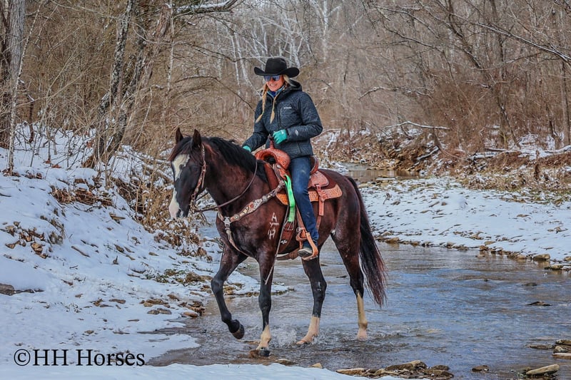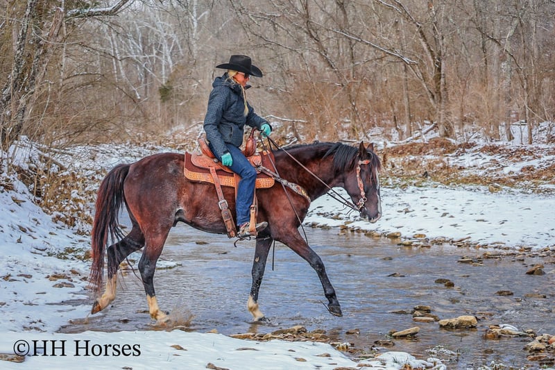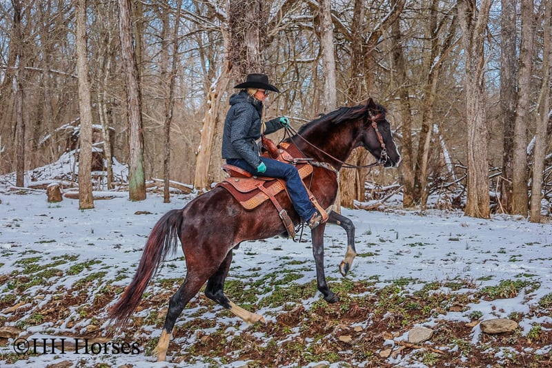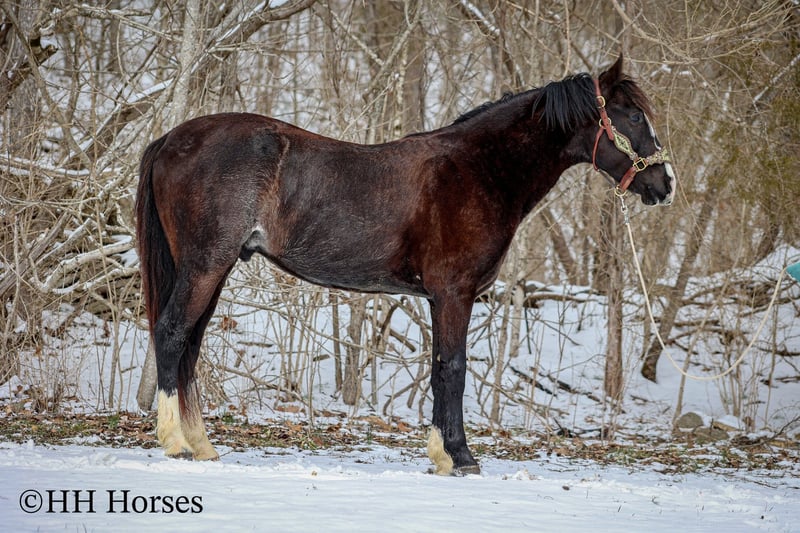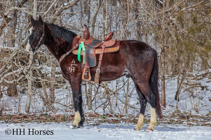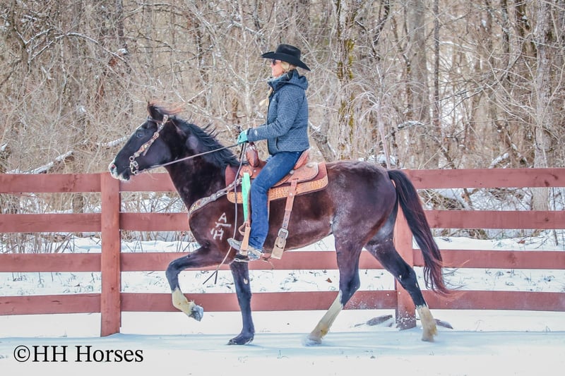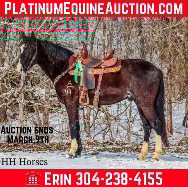 ONLINE AUCTION Place your bids at www.PlatinumEquineAuction.com Starting Bid $3500 Auction ends March 9th, 2025 Need a new saddle? Check out White Rock Saddles on our website or Facebook! This is “ZORRO”, a very smart, super smooth, naturally gaited BLACK ROAN KENTUCKY MOUNTAIN GELDING that is fancy, stylish, and has lots of ride. He aims to please and is an excellent trail horse. He has also been used for ranch work and been ridden out in the wide open spaces. He is 15 hands tall and 7 years old. He is fun to ride and stays in gait with no issues. He will also canter when asked and he stops easily. He will walk nicely on a loose rein. He goes willingly wherever you point him and he will cross icy streams and travel over snowy ground with confidence. He is sure footed and will cautiously travel up and down steep embankments. He has excellent ground manners, is very respectful of your space, and he pays attention to what you ask of him. He is a unique black roan with roaning throughout his flanks and loin area. He has an irregular blaze face with stocking legs making him really stand out wherever he travels. He has been on the roads and is traffic safe, he is not spooky, and he rides out alone fine. He will also ride in a group with no problems. He is a great horse that is very good gaited and he has a pleasant personality. He is intelligent, pretty, and extra comfy to ride. He is obedient and wants to do what’s right. If you’d like more info or want to make a Buy It Now Offer contact HH Horses Erin 304-238-4155 Located in Flemingsburg, KY. ONLINE AUCTION Place your bids at www.PlatinumEquineAuction.com Starting Bid $3500 Auction ends March 9th, 2025 Need a new saddle? Check out White Rock Saddles on our website or Facebook!