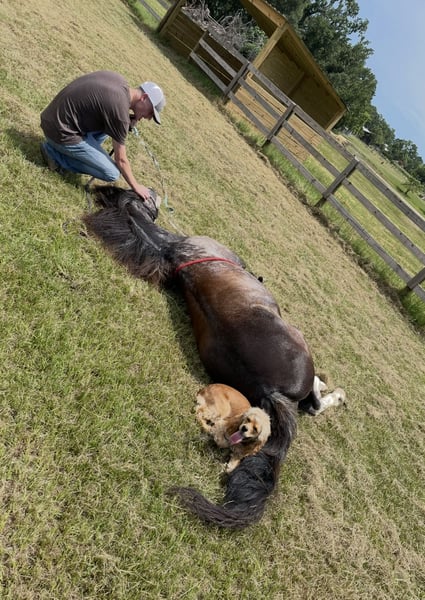• Gets along well with other horses, dogs, cows, and goats