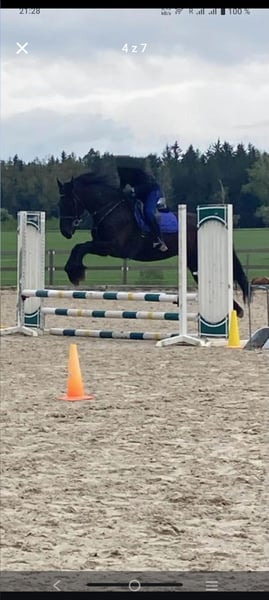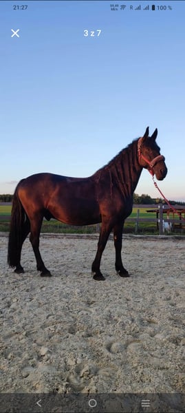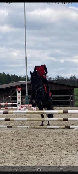 Ein charmanter, 8-jähriger Kladruber-Friesen-Wallach mit außergewöhnlichen Bewegungen und Charakter. Mit über 170 cm Stockmaß ist er kräftig gebaut und eignet sich auch hervorragend für einen Reiter. Er ist ein richtiges Kuscheltier, liebt den Kontakt zu Menschen und ist unkompliziert im Umgang mit Hufschmied und Tierarzt. Regelmäßig geimpft, entwurmt und beschlagen. Er ist ein vorwärtsgerichtetes Pferd, feinfühlig auf Hilfen und sanft im Maul. Er ist sehr angenehm und komfortabel zu reiten. Er trägt nicht, webt nicht und schluckt nicht. Er springt 70–80 cm. Seine gehobene Hinterhand macht ihn geeignet für Dressur und Fahrsport. Das Pferd befindet sich derzeit in Tschechien. Im Preis inbegriffen sind Zaumzeug, Vorderzeug und Sattel.