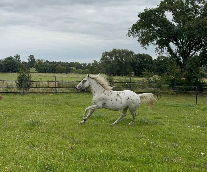 **Verkaufsanzeige: Traumhafter Knabstrupper Hengst** Zum Verkauf steht ein wunderschöner Knabstrupper Hengst aus dem Jahr 2023,ein echter Blickfang. Er ist gut sozialisiert und hat bereits erste Erfahrungen im Umgang mit Menschen gesammelt. Seine lebhafte und zugleich ausgeglichene Art macht ihn zu einem idealen Partner für Reiter, die ein zuverlässiges und charakterstarkes Pferd suchen. Er besitzt 10 Decksprünge auf Lebenszeit bei der KNN und wurde dort mit einer 8 bewertet, was für seine Körqualität spricht, kann aber auch gern Wallach werden,damit einer Karriere als barocker und typvoller Wallach, den ich jetzt schon in Piaffen und Galopppirouetten sehen kann nichts im Wege steht. Er ist selbstbewusst, intelligent und mitdenkend,dabei fein und sensibel. Jedoch auch durchaus dominant. Bei Interesse oder weiteren Fragen stehe ich Ihnen gerne zur Verfügung. Lassen Sie sich diese Gelegenheit nicht entgehen, einen so besonderen Hengst zu erwerben!