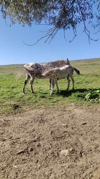**Sales Advertisement: Dreamy Knabstrupper Stallion** For sale is a beautiful Knabstrupper stallion, born in 2025. With his striking tiger-spotted coat, he attracts all attention. Equipped with very nice basic gaits, this already long-legged stallion will later bring a lot of joy in classical dressage or any other discipline of riding. The little one has been raised robustly outdoors, is healthy, and very correctly built. We wish for him to find loving and supportive hands. In October, he will come with his mother from summer pasture and will be available for pickup starting in November. By then, he will have mastered the foal ABC. If you are interested or would like videos and further information, please feel free to contact me (preferably via WhatsApp).