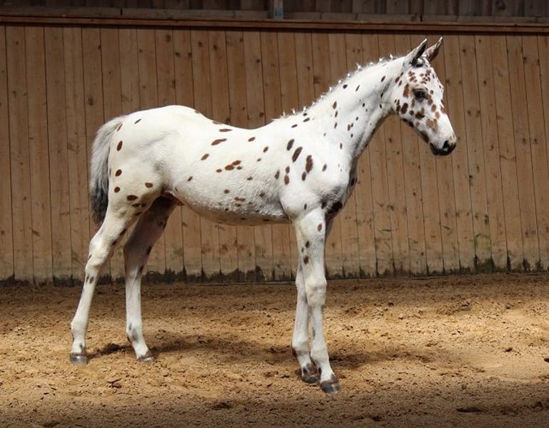 Typvoller Tigerscheck-Wallach (3 Jahre) von Carlsson vom Dach (Knabstrupper, 163 cm) aus der Schwedenlindes Jenny (Welsh B von Tassilo, 140 cm) mir sehr guten GGA. Bei diesem Hingucker in Sonderlackierung sind die Punkte gut gefallen. Mutter Schwedenlindes Jenny brachte schon viele doppelveranlagte, erfolgreiche Sportponys, Staatsprämienstuten, sowie gekörte Hengste und ist selbst mit Kindern im Spring-Parcour erfolgreich gestartet. Geschätzt wird er ca. 154-158 cm groß werden. Bei Interesse melden Sie sich bitte nur telefonisch, per SMS oder Whats App unter der Nummer 0049 1725488966.