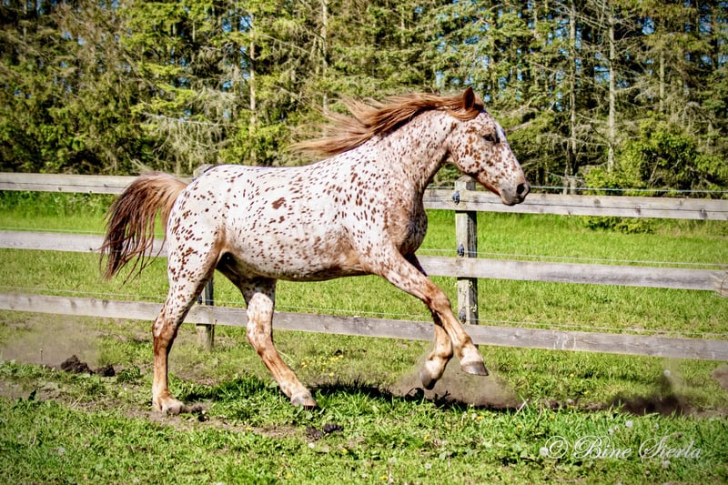 Very handsome 16/16 purebred original knabstrup stallion for breeding, riding, or carriage. Old classic type very well build for collection. Easy to handle, sweet, healthy, have lots of pretty hair, and will be anybody’s best friend. If you choose to buy this horse, we will happily include 2 months free professional dressage training, so the horse is perfect fit before moving home to your stable. For more information, plus daily pictures and videos of our knabstrupper horses, we welcome you to follow our homepage… Stutteri Knabstrup 2025 Facebook