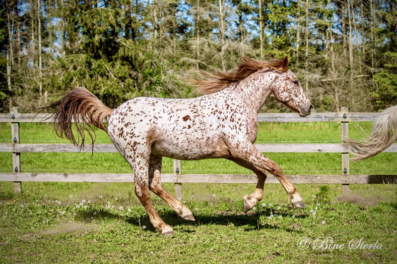 Joli et doux hongre Knabstrup de conte de fées