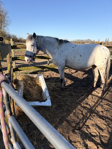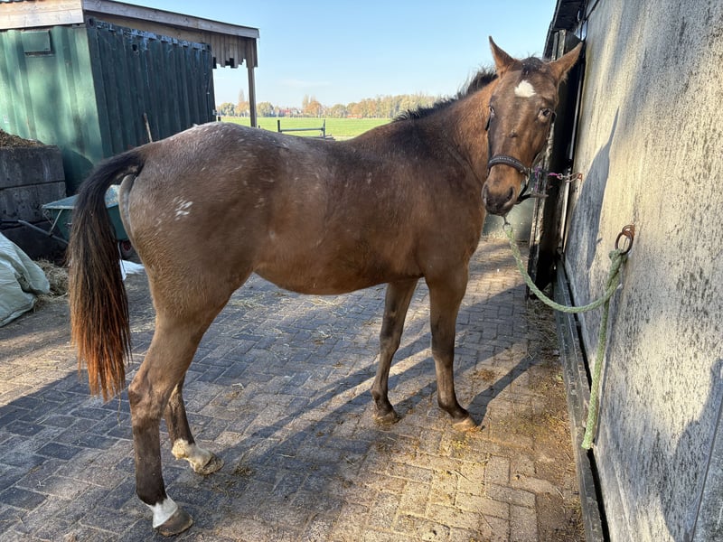 **Te koop: Knabstrupper merrie (2013)** Wij bieden deze prachtige Knabstrupper merrie aan, een echte blikvanger met haar karakteristieke appaloosa-patroon. Geboren in 2013, is zij inmiddels een volwassen en goed gerijpt paard met een stabiele en vriendelijke aard. Met een stokmaat van 149 cm is zij perfect geschikt voor zowel ruiters die op zoek zijn naar een betrouwbare dressuur- of allroundpartner, als voor fokkers die de bijzondere kenmerken van het Knabstrupper-ras willen voortzetten. Haar afkomst uit een foklijn die bekend staat om haar goede bewegingen en temperament, maakt haar een waardevolle aanwinst voor elke fokkerij of ruitersport. Deze merrie is goed doorgereden en heeft een rustige, welgemanierde uitstraling. Ze is makkelijk in de omgang en gewend aan verschillende omstandigheden, waardoor ze zich uitstekend leent voor een breed scala aan disciplines en ruiters. Bent u op zoek naar een opvallende en betrouwbare fokmerrie met een uniek uiterlijk en een goede basis? Neem gerust contact met ons op voor meer informatie of om haar te komen bekijken.