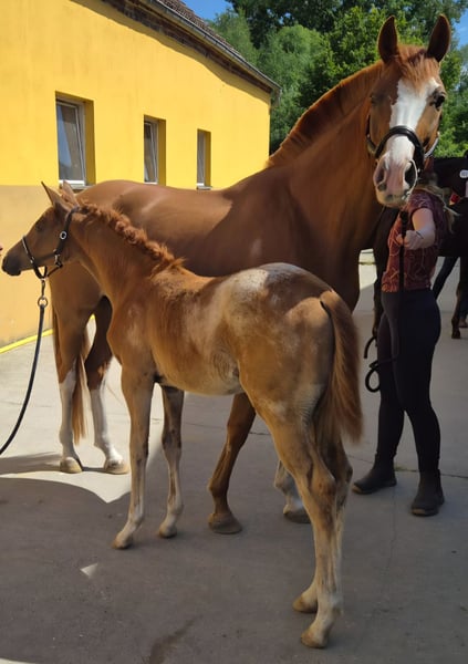 Mathilda née le 25.03.2025 Une petite souris magique qui enchante par son caractère et son apparence particulière ! Nous sommes très sûrs qu'elle va encore changer de pelage en un magnifique tiger. Sa maman est une jument primée d'État qui réunit un excellent sang. Le papa est le célèbre "Carlsson von Dach". Un très bon accouplement réussi. Bientôt, elle participera à l'exposition des poulains. Des mises à jour suivront. Mathilda pourra déménager à partir d'octobre ou rester chez nous pour une éducation supplémentaire.