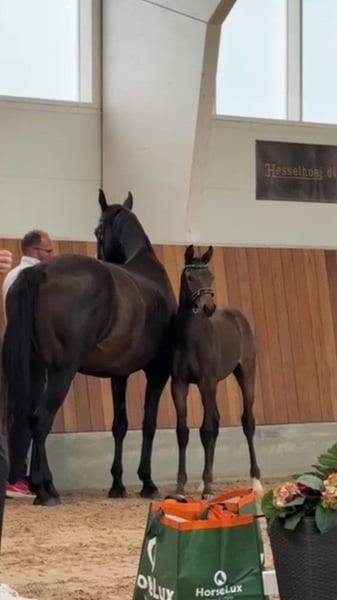 Knabstrupper Sportstute mit rotem Pass. Super elegante Stute, abstammend von Spotilas Boesgaard (aus Totilas) mit Blue Horse Zack als mütterlichem Großvater. Bewertet mit 9 in Typ, 9 in Rahmen, 8 in Fundament, 8 in Bewegung und 9 insgesamt. Die Mutter wurde bis zur S-Dressur ausgebildet. Das Fohlen ist farblich getestet, trägt das LP-Gen und hat begonnen, die Farbe von Braun zu Rappe mit Dorsalstreifen und Flecken am Hinterteil zu wechseln. Sie wurde am 27. April geboren und wird ab November bereit sein, das Zuhause zu verlassen. Fantastisches Temperament, lernt schnell, liebevoll und unabhängig. Erwartete Höhe 165 cm.