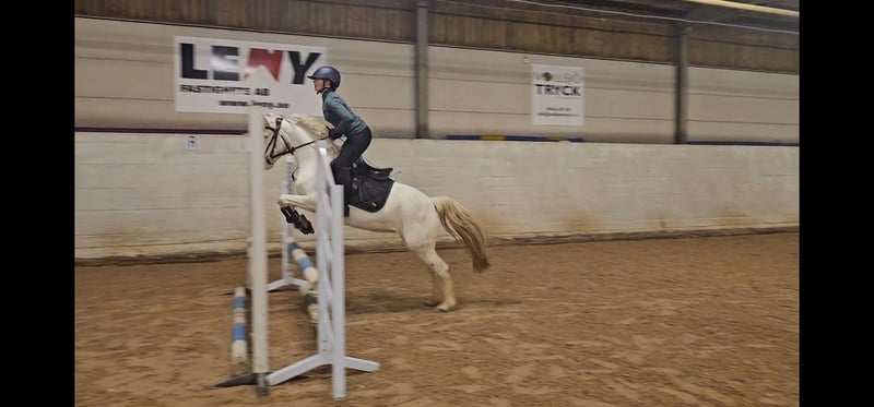 svenska – identifierat engelska Vi söker nu det rätta hemmet till vår egna uppfödning: en homozygot knabstrupper med fin stam stor pontential. Som nu fylda 6 år hoppar hon 80 cm med lätthet och behöver nu bara mer rutin och balans. Tävlad och tränad regelbundet av min 12 åriga dotter. Hon älskar hoppning och har bra bjudning och stor hoppglädje. Hon är väldigt trevlig även i dressyr och bär sig bra i alla gångarter gör sidvärtesrörelser. Jag rider henne själv regelbundet men bara i dressyr. Hon bär den tigrerade genen och nedärver prickar till 100% vid avel med enfärgad hingst – en garanti för framtida avkommor med prickar. Hennes far Gandalf tävlar MSV B hoppning i Danmark, och modern är vår familjefavorit som själv tävlat upp till LC hoppning och LA dressyr. Kombinationen ger en renavlad och välstammad ponny med både kapacitet och charm. Hon är en modig hoppponny med trevliga gångarter, lätt och smidig i typen, och har ett positivt temperament med en egen vilja som gör henne till en rolig och utvecklande ponnypartner. ✨ Viktigt att veta: Som homozygot knabstrupper är hon ljuskänslig och kräver extra omsorg under sommarhalvåret. Hon fungerar därför bäst som ridhäst under höst och vinter, men är samtidigt en värdefull avelsponny för den som ser hennes potential. Hon är regelbundet klippt, lastad, tränad och tävlad – en ponny som är en fröjd att umgås med. Modern finns att se på plats. Mäter 130 cm och ska mätas nästa gång som 8 åring. Vi söker en köpare som uppskattar både träning och tävling, men som framför allt kan ge henne rätt förutsättningar och se hennes värde i avel. Att skriva annons är inte lätt. Ett kort avsnitt där man ska lyckas beskriva den ponny men känner mycket för och som verkligen förtjänar det speciella hemmet. 1 753 We are now looking for the right home for our own breeding: a homozygous Knabstrupper with a fine lineage and great potential. Now 6 years old, she jumps 80 cm with ease and now just needs more routine and balance. Competed and trained regularly by my 12 year old daughter. She loves jumping and has good command and great jumping joy. She is also very nice in dressage and carries herself well in all gaits, makes lateral movements. I ride her regularly myself but only in dressage. She carries the brindle gene and inherits spots 100% when breeding with a solid stallion - a guarantee for future offspring with spots. Her father Gandalf competes in MSV B jumping in Denmark, and the mother is our family favorite who herself competed up to LC jumping and LA dressage. The combination gives a purebred and well-bred pony with both capacity and charm. She is a brave jumping pony with pleasant gaits, light and agile in type, and has a positive temperament with her own will that makes her a fun and developing pony partner. ✨ Important to know: As a homozygous Knabstrupper, she is sensitive to light and requires extra care during the summer months. She therefore works best as a riding horse during autumn and winter, but is also a valuable breeding pony for those who see her potential. She is regularly clipped, loaded, trained and competed - a pony that is a joy to spend time with. The mother can be seen on site. Measures 130 cm and will be measured next time at 8 years old. We are looking for a buyer who appreciates both training and competition, but who above all can give her the right conditions and see her value in breeding. Writing an ad is not easy. A short section where you should manage to describe the pony that you feel a lot about and that really deserves the special home.