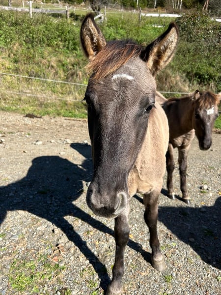 Hengstjährling,kennt das Fohlen ABC, kann auf Wunsch gegen Kostenübernahme gelegt werden.