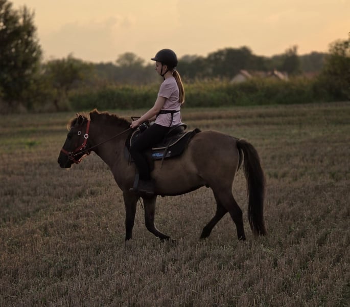 Konikwallach - perfekt für Kinder! Bald 4 j.a ca. 1,41m ( noch in Wachstum) Kinderlieb Schön angeritten und Gelände sicher. Mit Vollabstammung, Ohne Unarten Top Gesund Offenstall geeignet Standort nähe Görlitz Videos vorhanden. Transport möglich