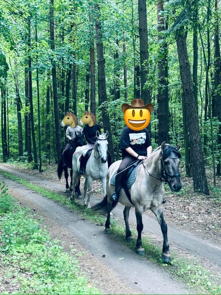 Spokojny wałach. Zdrowy młody koń. Chodzi sam w tereny. Ujeżdżany na ujeżdżalni, pierwsze skoki. Bezproblemowy przy kowalu. Utrzymywany cały rok w systemie bezstajennym. Bez problemu wchodzi do przyczepy. Nauczony stania sam w boksie. Przyjaciel na długie lata.