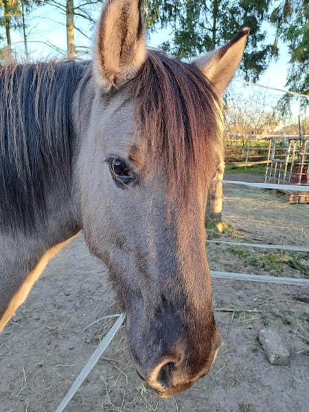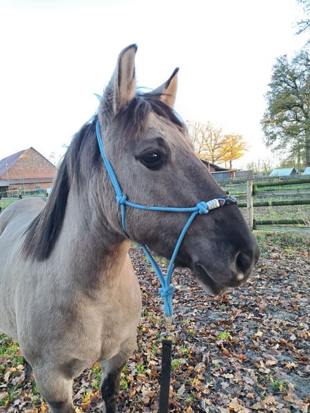 Mein super lieber und schicker Konik Thorin sucht nach einer neuen Herausforderung. Thorin ist 5,5 Jahre alt, und ca 137 cm groß. Ich habe ihn bisher schonend an sattel und Reitergewicht gewöhnt. Aber richtig eingeritten ist er noch nicht. Man such sich also noch etwas zeit für ihn nehmen. Wenn man sein vertrauen gewonnen hat, geht er mit einem durch dick und dünn. Longieren, Doppellonge, spazieren bodenarbeit, bei allem ist er super entspannt dabei und wird er doch mal nervös, ist er immer händelbar. Thorin zeigte sich bei mir immer freundlich, nie kopflos oder panisch und immer neugierig und lernfreudig. Ich glaube das er den idealen Freizeitpartner abgeben wird. Er muss leider gehen, weil ich gesundheitlich sehr eingeschränkt bin und er nicht genug gefördert wird. Thorin zieht mit all seinem Zubehör um. Sattel, sattel decken, mehrere decken, trensen, kappzaum, knotenhalfter und einfach allem was er so besitzt. So kann man direkt durchstarten und sich nach und nach neu eindecken. Thorin wurde zuletzt im Dezember geimpft, Tetanus und Influenza. Hifschmied ist alle 6-8 wochen da gewesen. Jedes Jahr im Frühjahr wurden die Zähne gemacht. Und regelmäßig wurde er entwurmt. Thorin steht im Offenstall und kennt es auch mit Stuten zusammen zu stehen. Momentan steht er mit einem shettywallach zusammen. Er kann jederzeit ausziehen, es wäre schön wenn er zeitig ein neues zuahsue findet weil er derzeit einfach gelangweilt und unterfordert ist. Für 3000vb mit sämtlichem Zubehör darf er dann umziehen.