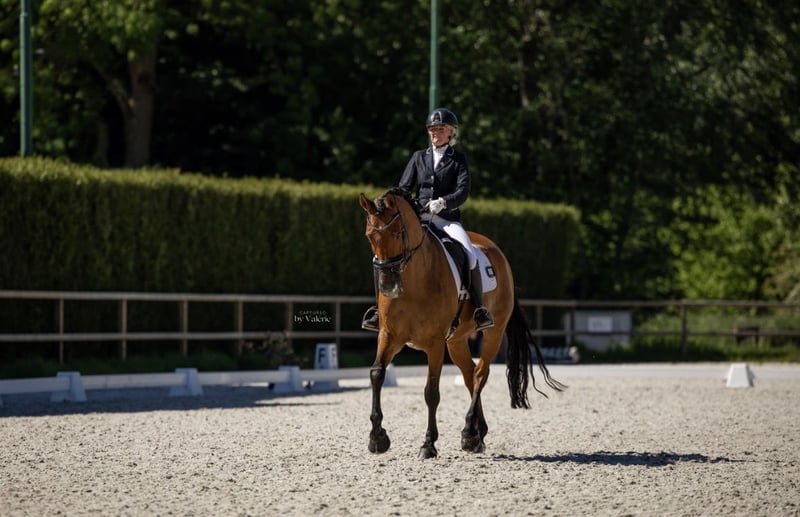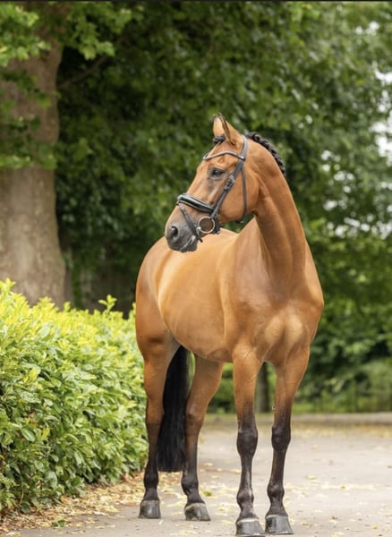 Harley is a handsome gelding with a good temperament, truly a schoolmaster who is always cheerful. His pedigree is (Spartacus x Van Gogh). He is a pleasant horse to ride, light in the hand, and always eager to work for you. He is simply your best and sweetest friend! Harley is 14 years old (born April 19, 2012) and measures 1.68 meters. He competes in Z1 dressage but is further trained; for example, he also knows flying changes. Harley is suitable for someone looking for a reliable, gentle horse for dressage at the basic level, or for enjoyable trail rides. He also loves cavaletti and pole work. He is easy to handle; for instance, you can load and tack him up alone while he stands calmly at the trailer. I have owned him since he was 3 years old, trained him myself, and learned a lot from him. He would also be very suitable for a mother and teenage daughter to share a horse, or as a good transition from pony to horse. In March 2026, he was fully veterinary and radiological examined, including spine and neck. He has no stable vices. Harley has pollen allergy; I ride him with a nose net, which works perfectly, and he shows no signs of discomfort. Inspection is permitted (K.K.). Dealers need not respond!!! For more information or to make an appointment, please feel free to contact me! A video can be provided upon request!