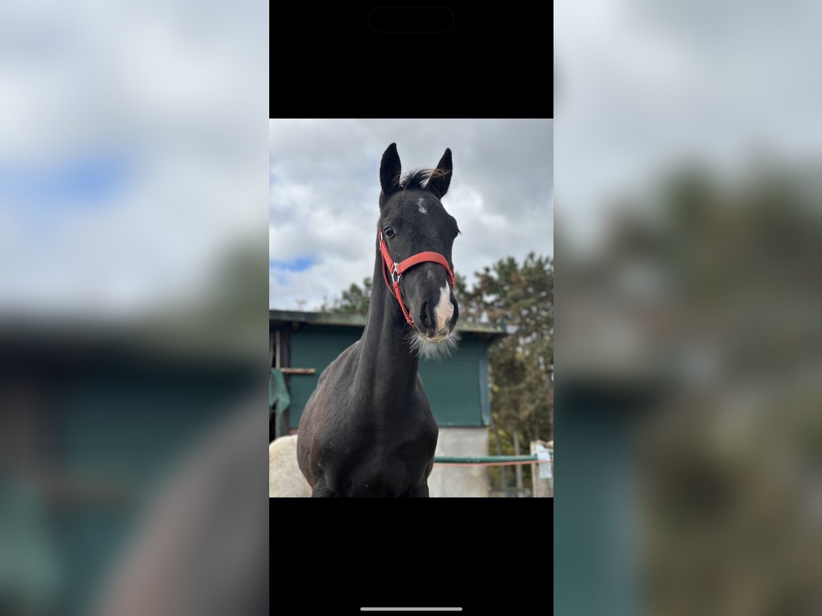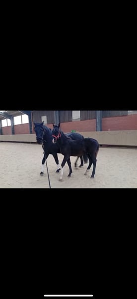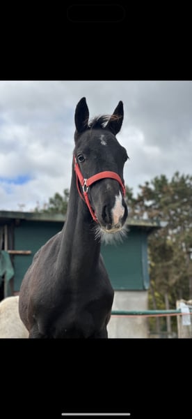 Elegant Black KWPN Foal with Full Papers For sale is a stunning black KWPN foal with full registration, correct conformation, and promising potential for sport and leisure. Born on May 14, 2025, currently approximately 1.30 m tall, with an expected final height of over 1.60 m. The foal is healthy, well-developed, and impresses not only with its expressive appearance but also with its lovable, balanced temperament. In daily handling, it is very well-behaved, friendly, and easy to manage. The foal’s basic training (leading, tying, hoof handling, etc.) is already familiar to it. An ideal young horse for riders or breeders who value quality, pedigree, and character. Further information gladly available upon request.