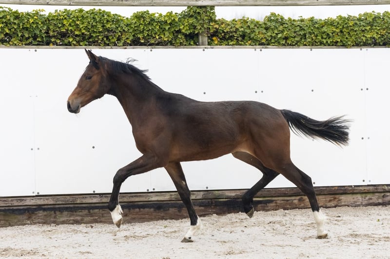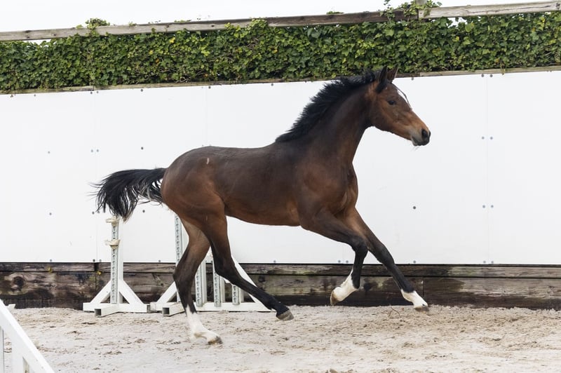 Very beautiful type with a lot of blood and a complete appearance. Shows a good attitude and is easy to work with. On the jump a complete sport horse: quick off the ground, with good technique and push-off. Has scope and already shows an interesting way of jumping. Also interesting for breeding. Sire FOR TREASURE VDL – 1.25m level Passes on modern sport horses with technique, reflexes and attitude. Dam LOULOU – no sport record known Damline / family Granddam: VIENNA – 1.30m Further in the line: ECLIPS – 1.45m MEGA TOBY SHINNING STAR S – 1.35m KORA – 1.45m KARO – 1.45m ALIBABA Z – 1.50m CONEL Z – 1.40m Approved stallions in the line: FOR PLEASURE, CARTHAGO, VERDI TN, QUIDAM DE REVEL, CORLAND For horses younger than 24 months, it is not mandatory with us to take X-rays. At that age, horses are still developing and the joints are not yet fully grown. If any abnormalities are suspected during the clinical examination, this will be noted in the clinical report and/or additional X-rays will be taken for further investigation.