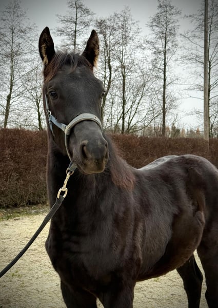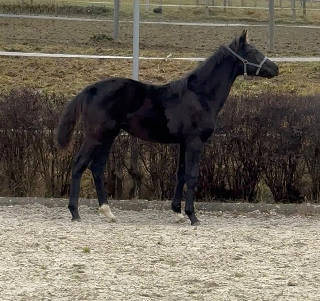 Zum Verkauf steht das vielversprechende Rapp-Hengstfohlen „VALENTINO VR 46“ mit interessanter Abstammung und hervorragender Perspektive für den gehobenen Freizeit- und Dressursport. Name: Valentino VR 46 * 12.06.2025 🖤 Rappe Abstammung: D‘Agostini S x Don Juan De Hus Valentino überzeugt durch sein zugängliches, selbstbewusstes und menschenbezogenes Wesen. Er zeigt sich altersgemäß neugierig, freundlich und im Umgang sehr angenehm. Er präsentiert sich sehr bewegungsstark, ist langbeinig, mit einer äußerst aktiven und kraftvollen Hinterhand, guter Balance und viel natürlicher Elastizität. Damit bringt er tolle Voraussetzungen für die spätere Ausbildung im Dressursport mit, eignet sich aber ebenso hervorragend für ambitionierte Freizeitreiter. Ein typvoller junger Rappe mit Charme, Qualität und Entwicklungspotenzial. Wir wünschen uns für ihn ein liebevolles Zuhause in dem sein Potenzial geschätzt wird. Preis ist VHB.
