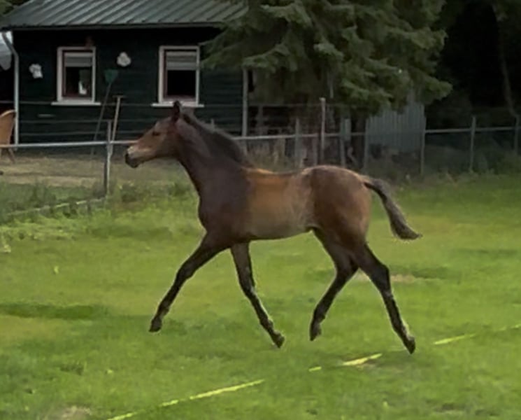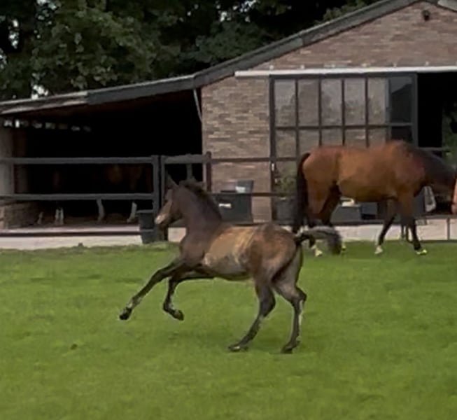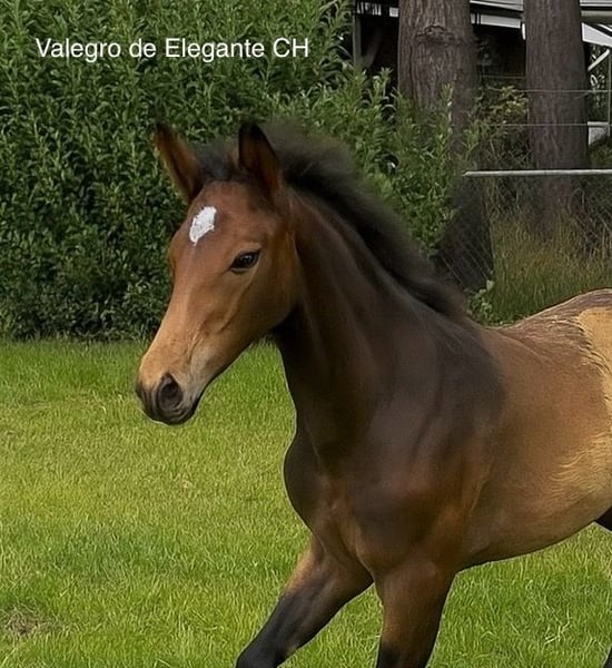 Super knap hengstveulen ⚜️ Valegro de Elegante CH ⚜️ * 27-04-2025, van dekhengst Elegante de Millan III x Voltaire x Hero x Wolfgang zoekt zijn forever home 🥰 Hij zou uitermate geschikt zijn voor Eventing of Working equitation. Nooit bang, alles is leuk en hij doet altijd met alles mee. Valegro komt elke dag in de hand, krijgt het veulen abc mee en is een makkelijk en heel mensgericht veulen. Echt een allemansvriendje Verwachte stokmaat: +/- 1.70m Staat correct op de benen, wordt ontwormd volgens schema dierenarts en gaat mee in de hoefsmid rondes Mag eventueel hier in de opfok blijven Vragen? Stuur gerust een pb! Valegro is te bezichtigen in Maasbree, Limburg