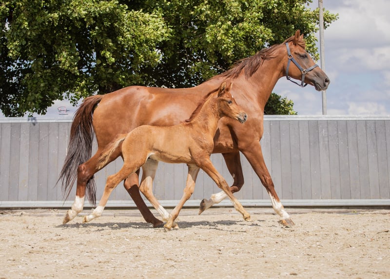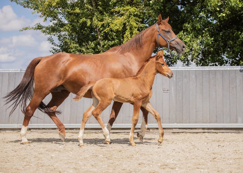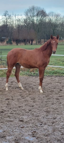 Voor wie investeert in kwaliteit en bewezen genetica Dressuurgefokte jaarling hengst | Juni 2025 | Vos | Pitch Perfect x Johnson Te koop aangeboden: zeer aansprekende vos hengst, geboren juni 2025, met een sterke dressuurafstamming en bewezen predicaten in de moederlijn. Afstamming V. Pitch Perfect MV. Johnson Uit een stb elite, PROK, IBOP, preferente merrie uit de gerenommeerde Bleustyle-lijn. De moederlijn staat bekend om haar constante vererving van kwaliteit, instelling en rijdbaarheid. Binnen deze lijn zijn meerdere sportpaarden actief in de dressuur, met paarden die zich onderscheiden door balans, werkwilligheid en aanleg voor verzameling. De preferente status bevestigt de duurzame fokwaarde van deze stam. Via Pitch Perfect komt modern dressuurtype, souplesse en een aansprekend front. Johnson voegt bewezen Grand Prix-genen, kracht en draagvermogen toe. Een genetisch zeer interessante combinatie voor de ambitieuze sport- of fokkerijgerichte koper. Model & Beweging Modern, langgelijnd dressuurmodel met correcte fundamenten en goed ontwikkeld beenwerk. Hij toont: Een ruime, zuivere stap Een tactmatige draf met souplesse en balans Een krachtige galop met natuurlijke bergop tendens Daarnaast valt hij op door zijn attente, blije uitstraling en natuurlijke presentatie. Karakter & Opfok Nieuwsgierig, mensgericht en nuchter in de omgang. Correct opgegroeid in kuddeverband met zorgvuldige, evenwichtige opfok. Prijsklasse Passend binnen het midden- tot hogere segment, overeenkomstig zijn afstamming, predicaten en kwaliteit. Voor serieuze interesse en aanvullende informatie graag persoonlijk contact.