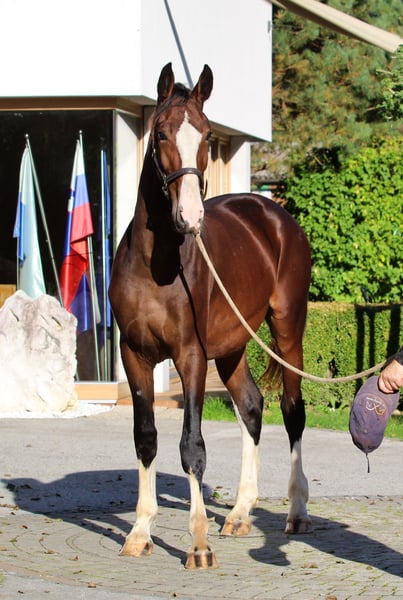 Een veelbelovende KWPN-nachwuchshengst die momenteel nog op de hengstenweide in diervriendelijk beheer opgroeit. Hij geniet van alles wat een jong paard nodig heeft voor een gezonde ontwikkeling: veel beweging, kwaliteitsvoer, sociaal contact in de kudde en een natuurlijke opfok met dagelijks menselijk contact. Zijn fundament is correct, hij toont nu al een indrukwekkend bewegingspotentieel, een heldere geest en een fijne, open houding tegenover de mens. Een ideaal jong paard voor iemand die vroegtijdig potentieel herkent en graag een jong paard vanaf het begin begeleidt. Karakter: nieuwsgierig, vriendelijk en evenwichtig Toekomstperspectief: ook geschikt voor de hogere sport U bent altijd welkom voor een kennismaking bij ons rijstalling REPNIK. U kunt ook overnachten in onze eigen pensionstalling en rustig al onze paarden bekijken (www.gostilna-repnik.si).