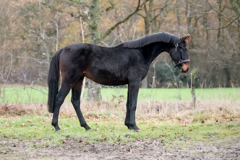 Well-moving 2.5-year-old stallion by the iconic B x Guardian S available for sale. He measures approximately 16.2 hh and is currently completely green. He is now in our stable with a blanket on and is very sweet and friendly. No stallion behavior. He has a full set of X-rays, including back and neck. Who is looking for a future star? Asking price: €5,750. The horse is located in Peer, Belgium. For more information, please contact us via WhatsApp at +32 468 144 327.