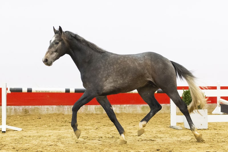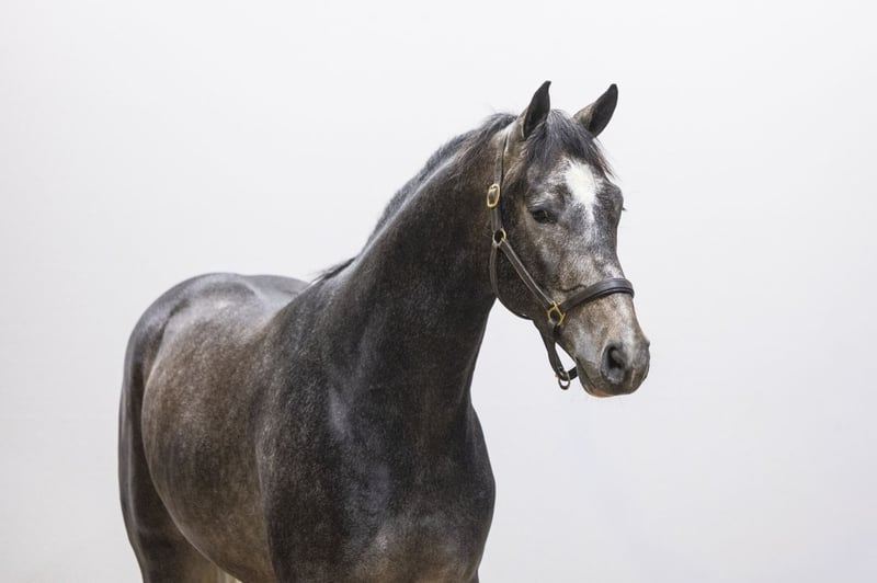 Beautiful grey with presence. Careful over the fences and showing easy scope. He jumps with good technique and natural understanding. A modern sport horse with quality and attitude. Sire Mr. Cornet de Regor (1.45m) is by Cornet Obolensky (1.60m) out of the Clinton (1.60m) line. He achieved international placings at 1.45m level. Proven Grand Prix scope is firmly anchored through Cornet Obolensky and Clinton. Dam Elijanta (prest, prok) is by Numero Uno (1.55m) and produced Iowa B (1.50m), Lady-Janta (1.35m) and Nou En (1.35m). Ringo Starr (by Minute Man) from this line is approved by KWPN. Further down the damline we find multiple international performers up to 1.60m level, including Nanta (1.60m), Gijanta (1.50m), Ishani B (1.45m) and others. A family consistently producing at 1.45m–1.60m level.