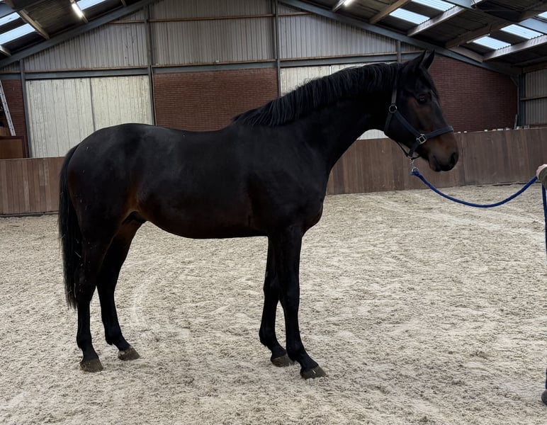 Very impressive 3-year-old stallion. An elegant build with a good front and strong conformation. Correctly built legs and free from any (stable) faults. In movement, he displays a beautiful posture and moves with a lot of impuls and excellent leg technique. His strong use of the hind legs is particularly noticeable. For inquiries, please call or send a WhatsApp message. Phone: +31 (0) 643197337