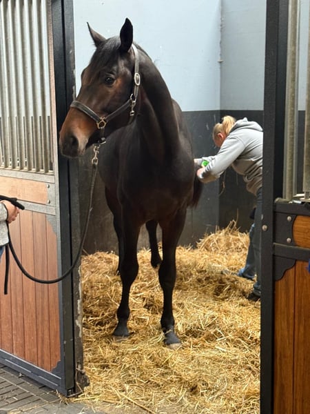 Giovane stallone di 3 anni molto impressionante. Una figura elegante con buon profilo e ottima congiunzione degli arti. Corretto nelle gambe e privo di difetti (da stalla). In movimento mostra una bella attitudine e avanza con molta forza e una buona tecnica di appoggio. Inoltre, spicca per l’uso potente degli arti posteriori. Per interesse, si prega di chiamare o scrivere su WhatsApp. Telefono: +31(0)643197337