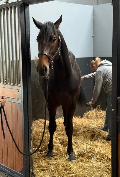 Sehr ansprechender 3-jähriger Hengst. Ein hübsches Modell mit Front und guten Verbindungen. Gerade auf den Beinen und frei von (Stall-)Mängeln. Im Bewegung zeigt er eine schöne Haltung und geht mit viel Ausdruck sowie einer guten Beintechnik durch den Parcours. Besonders fällt sein kräftiger Einsatz des Hinterbeins auf. Bei Interesse bitte anrufen oder per WhatsApp schreiben. Telefonnummer: +31(0)643197337