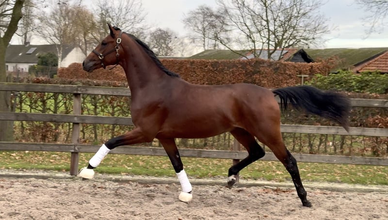 Hoch talentierter junger KWPN-Dressurpferd, direkt vom Züchter. Ein echter Blickfang mit Wow-Faktor, sehr ausdrucksstark, mit ansprechendem Kopf und viel Präsenz. Korrekte Beinstellung und gleichmäßige Hufe. Bewegt sich mit drei fantastischen Gängen, äußerst leichtfüßig, mit schöner Technik und viel Tritt in den Beinen. Starkes Hinterbein und viel Balance. Stammt aus einer sehr guten Mutterlinie; zwei volle Brüder der Mutter absolvieren jeweils Grand Prix und Prix St. Georges. Kürzlich klinisch und röntgenologisch untersucht, ohne Befunde!