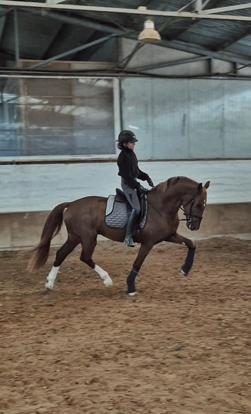 **For Sale: Amateur petite KWPN Stallion** Introducing a stunning KWPN stallion, born in 2021, who is sure to impress with his striking chestnut coat and elegant presence. Standing at a height of 160 cm, this young talent is poised to make his mark in the dressage arena. Ideal for riders that want to have a horse for life yet have no experience with young horses. Ronny is simple to deal with,has no stallion behavior and never disappoints. He is always happy being around people and horses and very kind in his reactions. This stallion is not only a beautiful horse but also possesses the athleticism and temperament necessary for success. Whether you are a competitive rider or looking for a promising young horse to develop, this KWPN stallion is ready to embark on his journey with you. Ronny has a full set of x rays including neck and back and no vices. Don’t miss the opportunity to own this remarkable horse. Contact us for more details and to arrange a viewing!