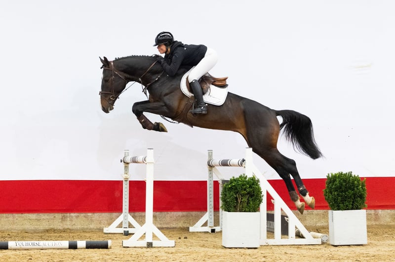 R.Kannan Jr immediately captures attention with his big, elegant canter, his light-footed way of going and his impressive scope. Although still a stallion, he is well-behaved and friendly in handling. His sire, Kannan Jr., was champion of the KWPN stallion approvals and was ridden by Olympians Marcus Ehning and Jur Vrieling. Under Vrieling, he competed successfully in the 1.60m classes, including a fifth place in the LGCT Grand Prix of New York. The dam, Galienke, is a daughter of the 1.40m stallion Opan, followed in the dam line by the influential blood of Garanco
