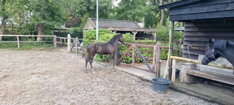 Zeer mooi hengstveulen met grand prix genen, moeder Just wimphof x Briljant x Havidof vader de bekende hengst One Million van Vivaldi x Apache die onlangs verkocht is naar Amerika. Allemaal mooie bloedlijnen die een prachtig hengstveulen hebben gemaakt. D-oc 104 en wffs negatief Wie gaat met deze knappe hengst een mooie toekomst tegemoet?