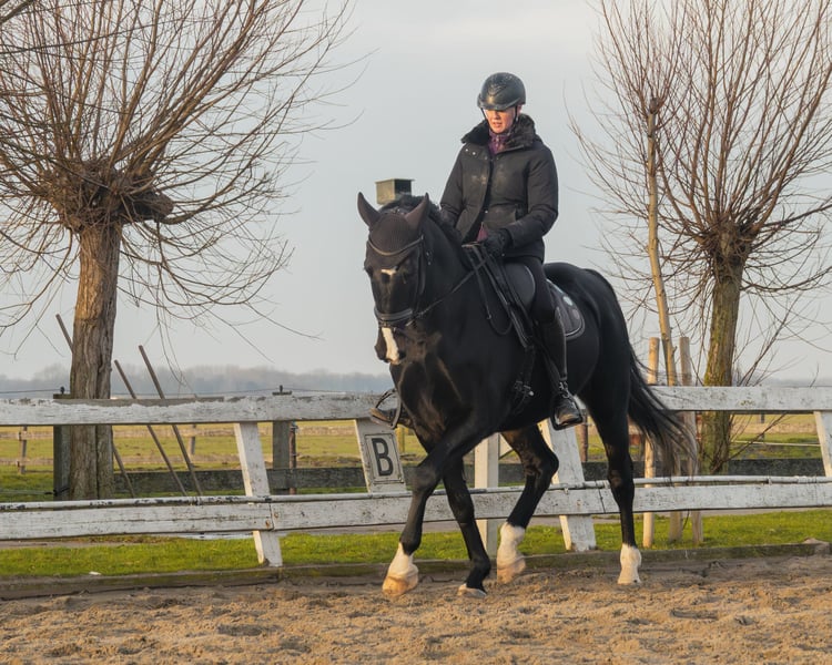 Kasper is een prachtige 10-jarige zwarte ruin met een hart van goud. Kasper is eerlijk, ijverig, ontzettend vriendelijk en erg knap. Hij heeft veel dressuurtalent en leert snel. Het afgelopen half jaar hebben we vooral speurwerk gedaan, waar hij ontzettend goed in is en veel plezier uit haalt. Dit helpt hem om beter te ontspannen, omdat hij van nature wat onzeker kan zijn en spanning langer vasthoudt. Kasper is makkelijk in de omgang binnen zijn vertrouwde omgeving. Respectvol, volgzaam en hij heeft humor. Kortom, een leuk paard om bij te zijn. Alleen op vreemd terrein bezorgen bewegende dingen hem stress, het lukt hem dan moeilijk om te blijven reguleren en hij bouwt dan spanning op. Kasper verdient een huis waar hij helemaal tot zijn recht kan komen en waar iemand de tijd neemt om hem in zijn kracht te zetten. Hij zou bijvoorbeeld heel geschikt kunnen zijn voor iemand die het leuk vindt met een onzeker paard te werken en hem alle tijd wil geven om te groeien in zijn zelfvertrouwen en daarnaast dressuurmatig plezier wilt hebben. Of iemand die op zoek is naar een maatje voor het leven om vanaf de grond te werken, coaching te geven of samen tijd door te brengen zonder druk. Praktische informatie: Leeftijd: 10 jaar Kleur: Zwart Geslacht: Ruin Stokmaat: 1.65 Papieren: Aquido x Special D Dresuurmatig niveau: Z1 + winst, thuis Z2 Grondwerk: speurwerk tot circa 25 minuten speuren. Temperament: Eerlijk, vriendelijk, ijverig, gevoelig, onzeker Gehouden: Staat buiten met schuilstal op paddock of wei, weeft op stal Trailer: Loopt er wel op, maar vindt het nog spannend Klinisch goed gekeurd op 31-1-26 Huidige training: dressuurmatig onderhouden en focus op ontspanning vanaf de grond en onder het zadel. Reden dat hij hier staat is omdat ik graag fanatiek verder in de dressuursport wil. Hiervoor is Kasper (nu) niet geschikt. Daarom zoeken ik iemand die met hem aan de slag wil, zonder druk en hem de ruimte geeft om te groeien in zijn zelfvertrouwen en loslaten van spanning. Bij het juiste huis is de prijs bespreekbaar. Vragen? Neem gerust contact op! Isabel 06 206 49 940