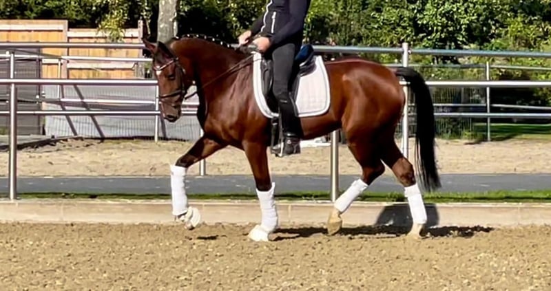 Sympatyczny 8-letni gniady wałach KWPN. "Kevin" wyróżnia się absolutnie miłą naturą! Jest całkowicie nieskomplikowany w obsłudze i ma już doświadczenie w turniejach. Może być używany przez każdego i może być używany od razu w ujeżdżeniu, a także w skokach przez przeszkody. Możemy też bardzo dobrze wyobrazić sobie "Kevina" jako konia zespołowego. Do obsługi przez słabszych i niepewnych jeźdźców, zapewnia niezbędne bezpieczeństwo. "Kevina" można przetestować w dowolnym momencie. Czekamy na kontakt z Państwem.