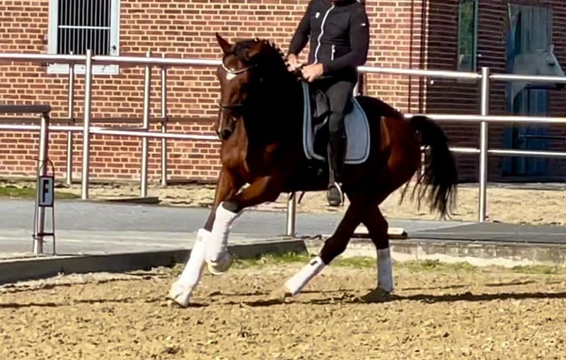 Simpatico castrone KWPN di 8 anni. "Kevin" si distingue per il suo carattere assolutamente piacevole! Non è assolutamente complicato da gestire e ha già esperienza nelle competizioni. Può essere gestito da chiunque e può essere utilizzato immediatamente sia nel dressage che nel salto ostacoli. Possiamo anche immaginare "Kevin" molto bene come cavallo di squadra. Quando viene montato da cavalieri più deboli e insicuri, fornisce la sicurezza necessaria. "Kevin" può essere provato in qualsiasi momento. Aspettiamo con ansia la vostra chiamata.