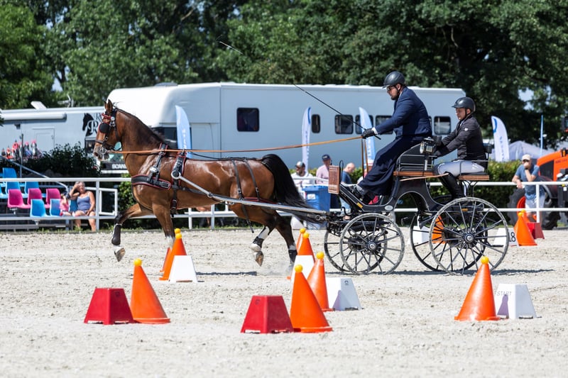 Young, gelding in a very good sporty type with good flexible movement in 3 gaits. He works in a single and steam harness. He has successfully competed at national competitions in pairs and singles, both at open and indoor competitions. Agile and fast in the marathon, ambitious. A great horse for singles. Hassle-free to use.