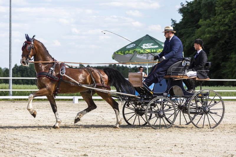 Junger, wallachhafter Wallach in einem sehr guten sportlichen Typ mit guter Beweglichkeit in 3 Gangarten. Er arbeitet in einem Einzel- und Dampfgeschirr. Er hat erfolgreich an nationalen Wettbewerben im Doppel und Einzel teilgenommen, sowohl bei offenen als auch bei Hallenwettbewerben. Agil und schnell im Marathon, ambitioniert. Ein tolles Pferd für Singles. Problemlos zu bedienen.