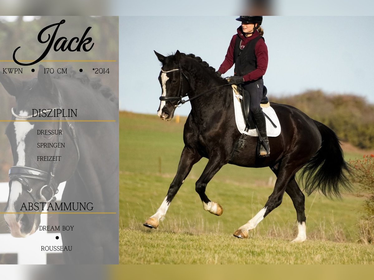Jack Daniel is a 2014-born KWPN gelding approximately 16.1 hh by Dream Boy, Vivaldi x Rousseau, Ferro, Krack C. *Jack Daniel* is a stylish all-rounder with a lovely temperament. He is a pleasure to ride in the arena, moving easily through the back. In the outdoor, he has proven to be well-behaved both alone and in a group. Jack also enjoys jumping over logs and shows enthusiasm in doing so. He is suitable for teenage riders as well. !!! BE SURE TO WATCH HIS VIDEO !!! He has competed internationally (also holds an FEI passport valid until 07/08/2027). He has been presented in harness, but we cannot comment on his suitability for driving, as we lack the expertise and have not tested this. He comes with existing X-ray results. You can find a current video of him here in the listing or at the following link: https://www.youtube.com/watch?v=wdCZpp4cBPc Pferdehandlung Dederichs – Your Partner for Horse Buying Contact & Availability: Inquiries please exclusively by phone at 0173/9792139 Monday – Friday: 9:00 AM – 6:00 PM Saturday: 9:00 AM – 3:00 PM Sunday: Closed Follow us on social media! Experience our daily work with sale horses on Instagram, TikTok & Facebook under Pferdehandlung Dederichs Discount: Receive 5%–10% off when taking your new dream horse immediately Trial Riding & Demonstrations: • Trial ride: €40 per horse (up to 2 riders), amount credited upon purchase • Holidays: Trial ride €50 • Demonstration by our grooms: €30 per horse (pre-riding, ground work, etc.) Pre-Purchase Examination & Transport: • Many of our horses already have a pre-purchase exam (AKU) • You are welcome to bring your own veterinarian • We can organize an examination for you • We also gladly assist with transport to your new home Other Sale Horses: We have additional horses available that are not yet listed online. If your dream horse is not yet among them, do not hesitate to contact us. Important Notes: • Approximate height measurements are estimates and not precisely measured • All descriptions are subjective assessments by the seller and do not constitute guaranteed properties