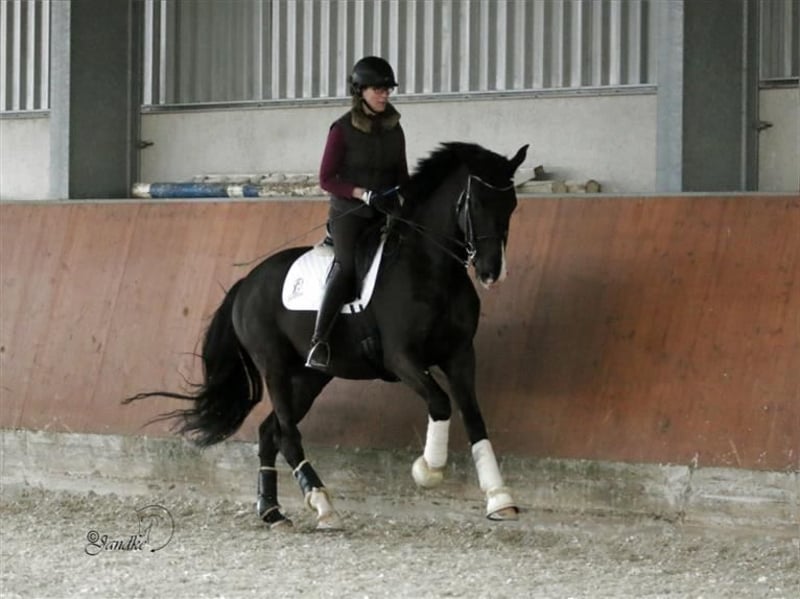 Vendo un elegante caballo KWPN, perfecto para doma! Este impresionante caballo negro, nacido en 2012, destaca por su carácter amigable y su aspecto noble. Con una altura de 1,73 m, ofrece la talla ideal para jinetes y amazonas ambiciosos que desean avanzar en su carrera en la disciplina de doma. El caballo está en entrenamiento de doma y ya muestra prometedores avances para los próximos pasos. Su carácter agradable lo convierte en un compañero confiable. Para más información o para concertar una visita, no dudes en contactarme.